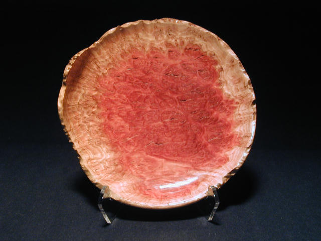 Natural edge turning from species burl cap. Plastic stand not included. Please inquire for plastic stand information.