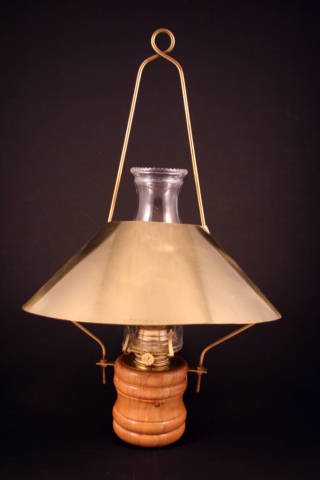 one-of-a-kind oil lamp. The brass plated parts compliment rich wood grain and color. Hanger & polished hat are solid brass. Glass Chimney Burner with adjustable flame and 8 oz oil capacity Finished in Polyurethane Accessories: Optional solid brass double "J" hook hanger (sizes vary, please inquire - see contact information) Replacement glass chimney $14:00 |